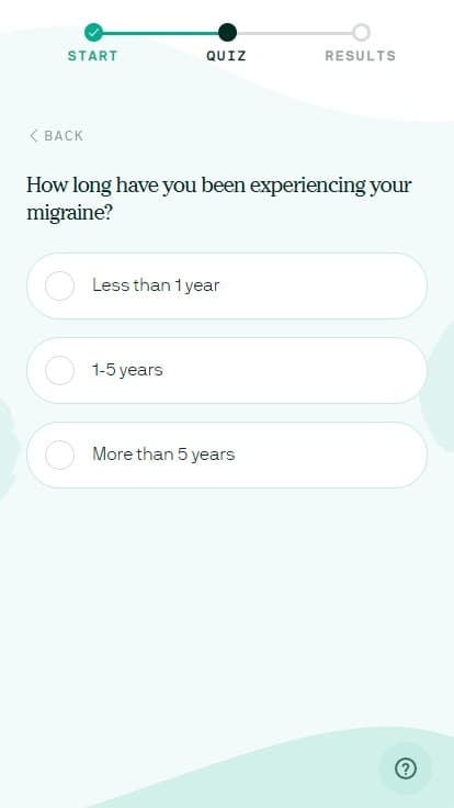 A flow for determining responders' needs regarding migraine problems, and according to information shared the system recommends a selection of drugs and offers a subscription.